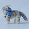 Cat Tabby 1936 Year 1996-1997 EAN 031847 Button, flag, shield and ticket Height 12 cm Mohair woven fur, gray/white, standing, taffeta collar with bell, replica 1936