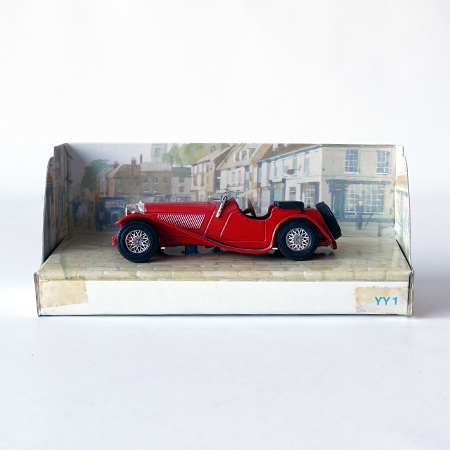 Models of Yesteryear, Y1/3, 1936 Jaguar SS100 Year car: 1977 Color: Red Scale: 1:38 Boxtype: N Manifactured: China