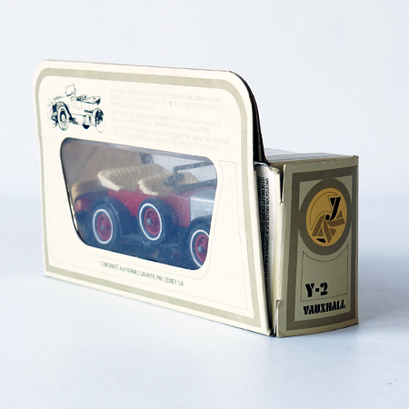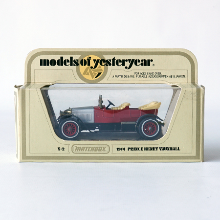 Models of Yesteryear, Y2/3, 1914 Prince Henry Vauxhall Year car: 1970 Color: Red (silver bonnet) Scale: 1:47 Boxtype: I Manifactured: United Kingdom