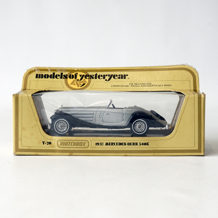 Models of Yesteryear, Y20/1, 1938 Mercedes Benz 540 K Year car: 1979 Color: Silver and black Scale: 1:45 Boxtype: Box I Manifactured: Great Britain