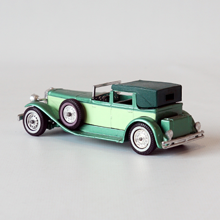 Models of Yesteryear, Y4/4, 1930 Model J. Duesenberg Year car: 1979 Color: Metallic Green/Lime Scale: 1:43 Boxtype: I Manifactured: Great Britain