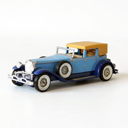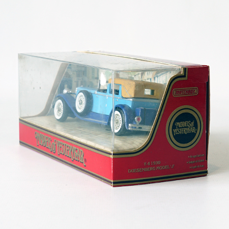 Models of Yesteryear, Y4/4, 1930 Model J. Duesenberg Year car: 1975 Color: Light Blue and Blue chassis Scale: 1:43 Boxtype: N Manifactured: Macau