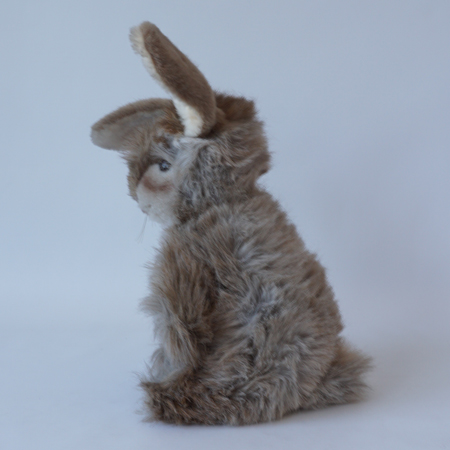 Ossi Rabbit Year 1978-1982 Art.nr. 2947/35 Button, flag and shield Height 35 cm Synthetic woven fur, brown/white, begging, surface washable